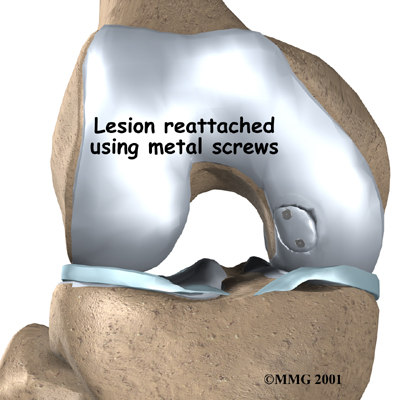 If the lesion becomes totally or partially detached, surgery is needed to remove the loose body or to fix it in place. Your surgeon will need to gather lots of information about your knee and your problem before surgery.