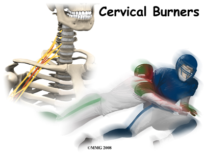 Injury to the nerves of the neck and shoulder that cause a burning or stinging feeling are called burners or stingers. Another name for this type of nerve injury is brachial plexus injury. Football players are affected most often. Up to half of all college football players have had at least one burner or stinger. Many of these occurred during high school football. Fortunately, it’s not a serious neck injury.